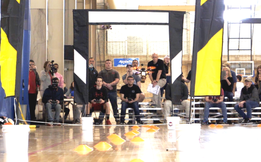 Seth Hatfield was one of dozens thumbing the joysticks on a remote control, and making last minute adjustments to four colorful propellers on top of a machine that had taken a full school year of teamwork to build. It was time for the drone race.