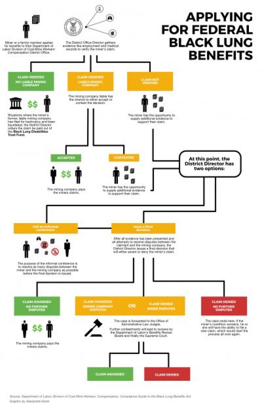 “The black lung benefits process is really adversarial,” said Evan Smith, an attorney with AppalReD Legal Aid who represents miners and widows in black lung litigation. “For people who just kind of file a claim and think they can figure out the system on their own, sadly they’re really at a disadvantage.”